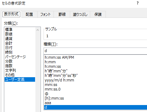 セルを右クリック→セルの書式設定→表示形式【分類】ユーザー定義→「d」を選択